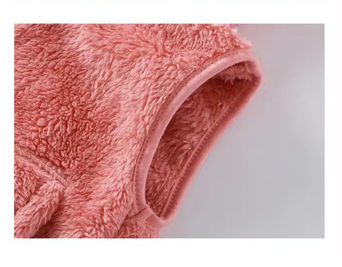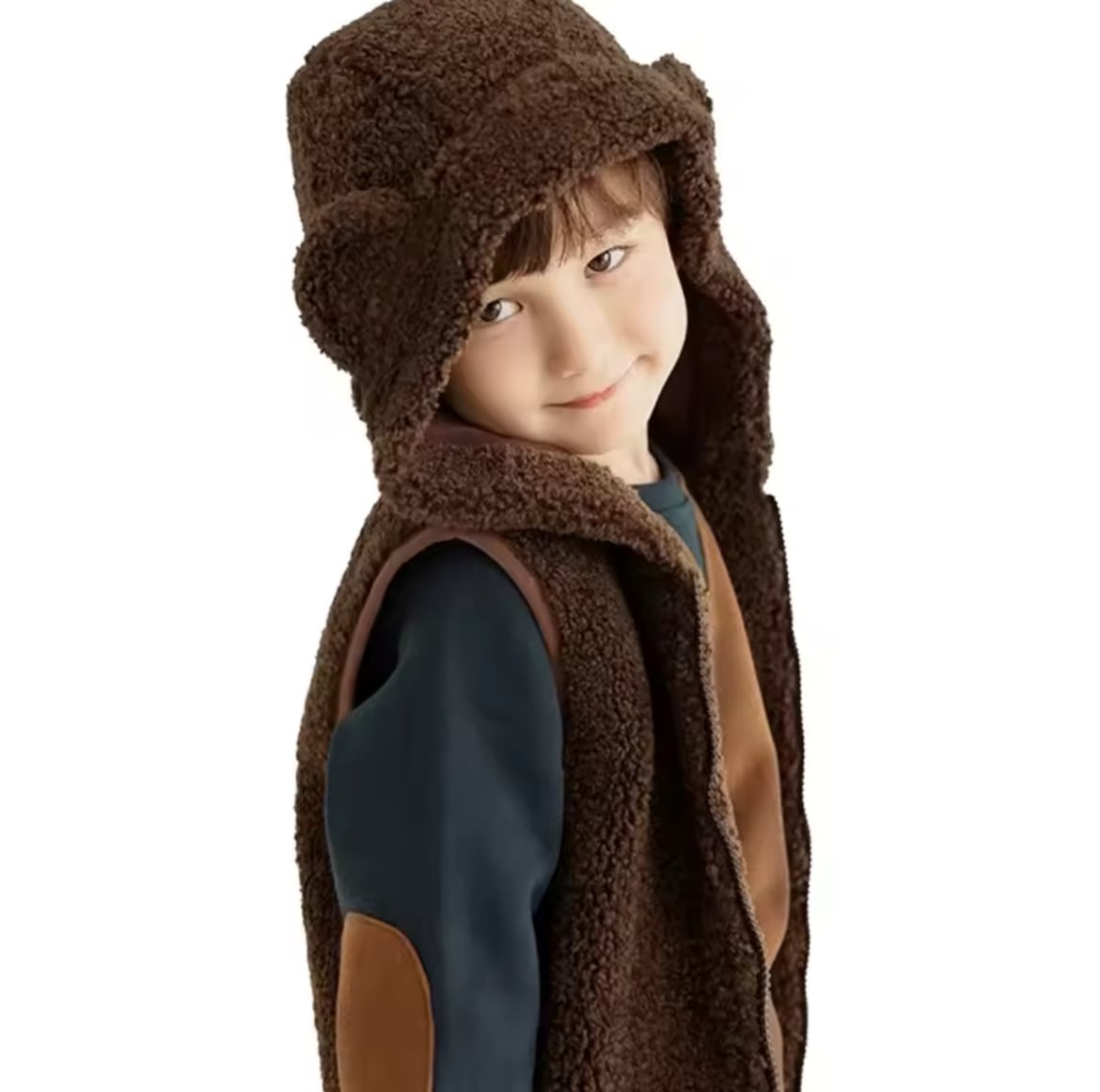 ふわふわやわらかボア素材のクマ耳付きベスト