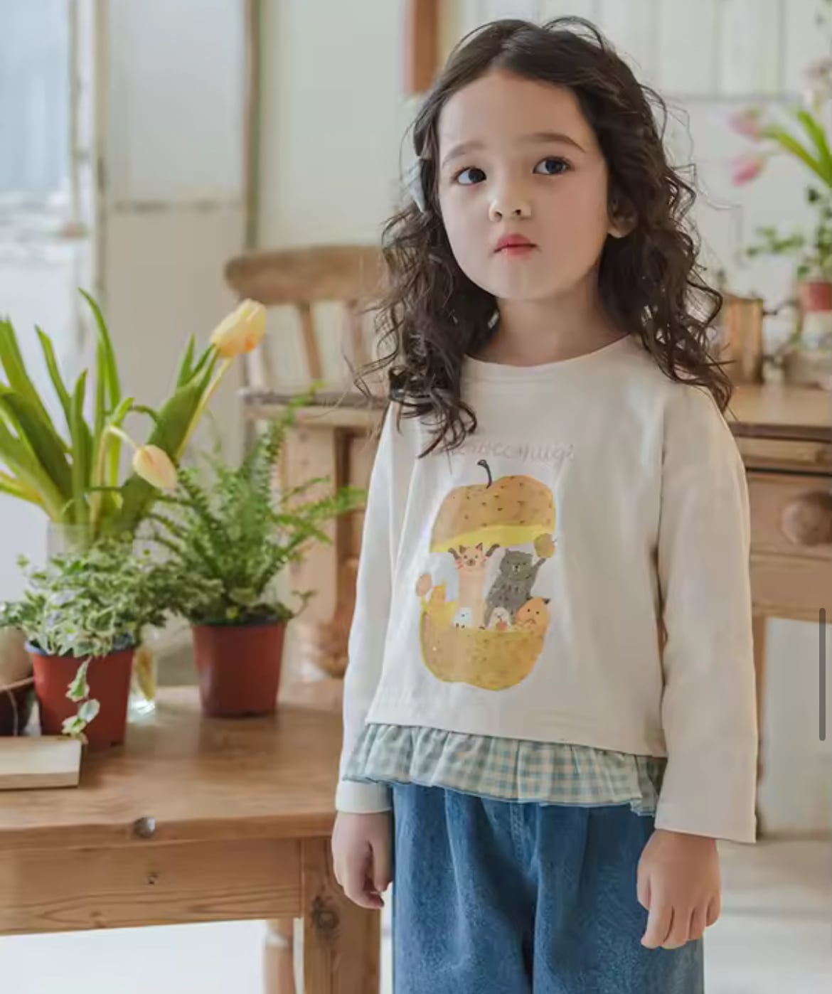 かわいいネコさんがフルーツの中からハローと飛び出して来ているようなトップス♡