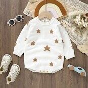 ふわふわした星柄がかわいい長袖ニットロンパースユニセックスでクリスマスにもオススメのアイテムです!