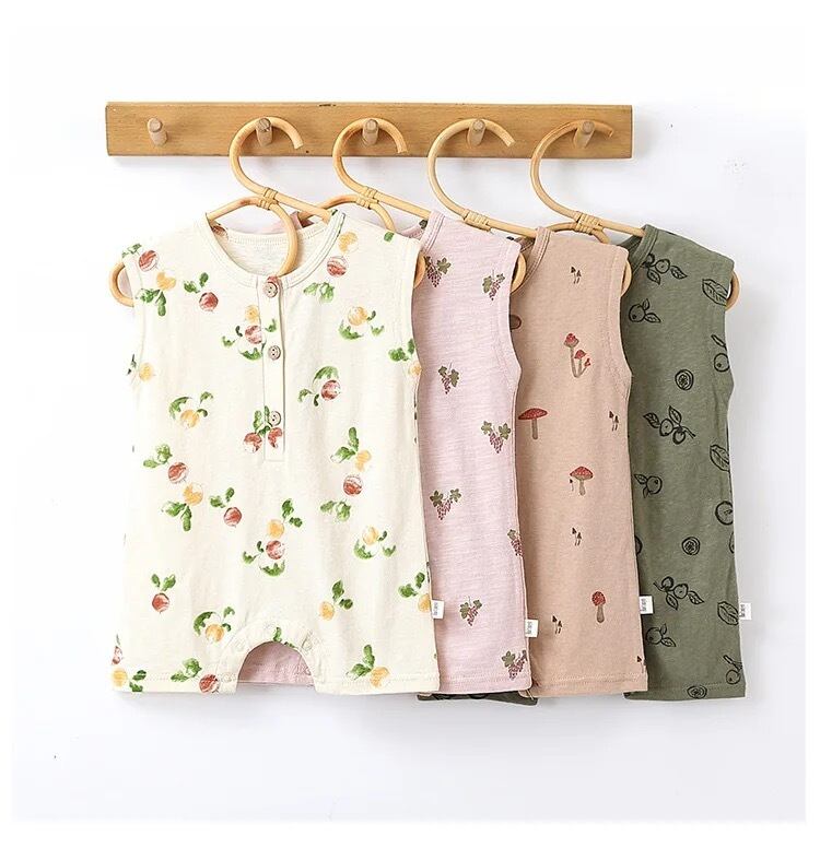 春夏らしいかわいいコットンプリントのロンパースが入荷しました♡