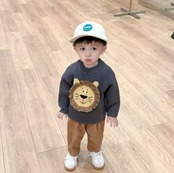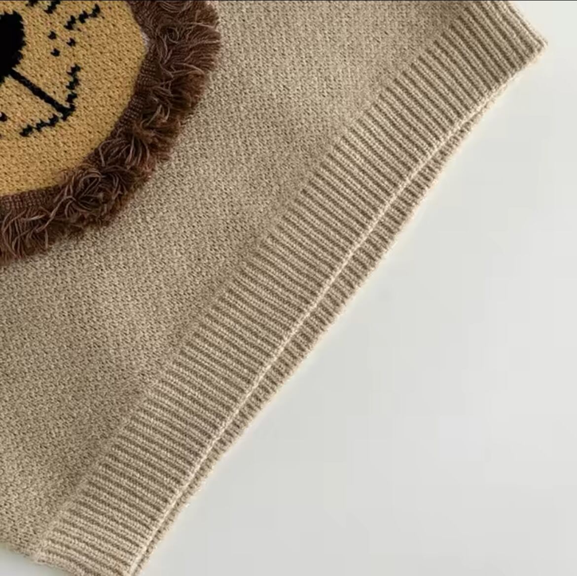 かわいいライオンさんのお顔が編み込まれたニットトップス テレ笑いしてるようなライオンさんの表情がとってもかわいいニットです♡